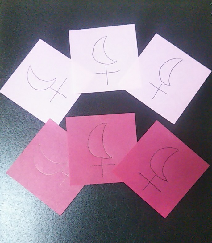 今回の新月のラッキーアイテムとして、リリスのシンボルをピンクとマゼンダの紙(神)に描いて、仕込みました。