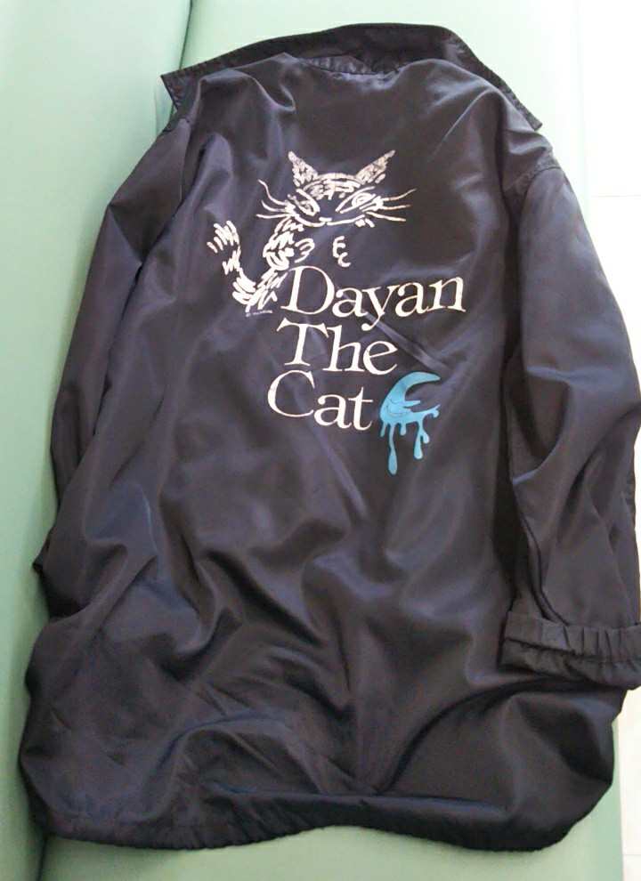 今日は、黒系で服をまとめてるし、昼間は暖かいので、20代の時に買った「ダヤン」の薄手のコートを発動。