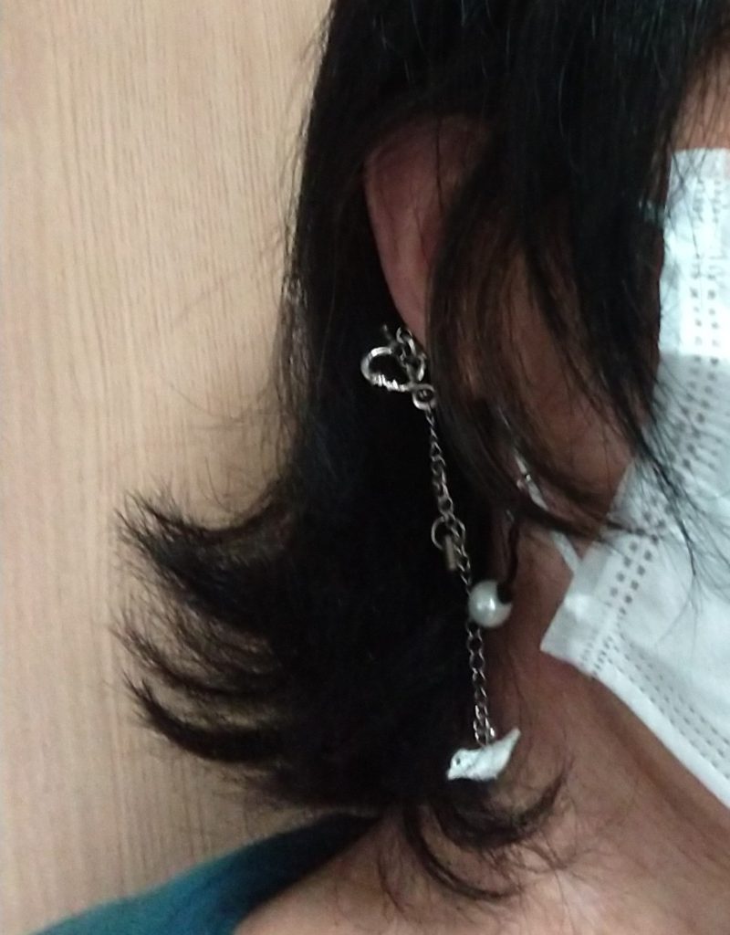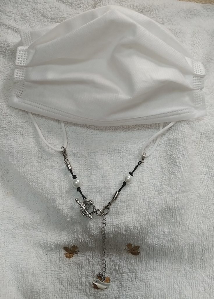 後ろ留めをすると髪の毛がずりあがってくるようになったので、無駄に多機能なマスクチャームとなる。