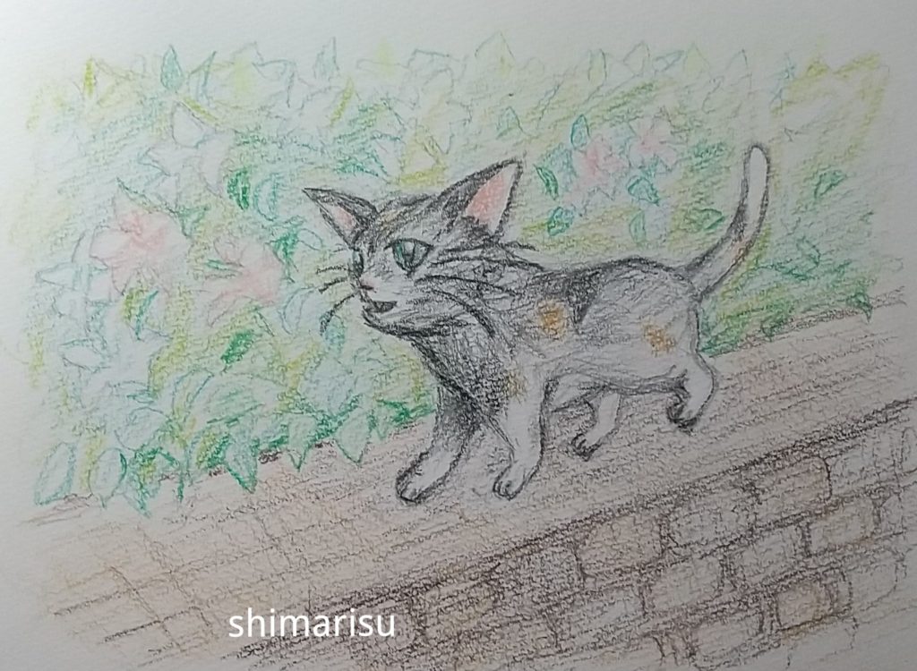 ふと、可愛い猫に出会い、猫を描いてみた。