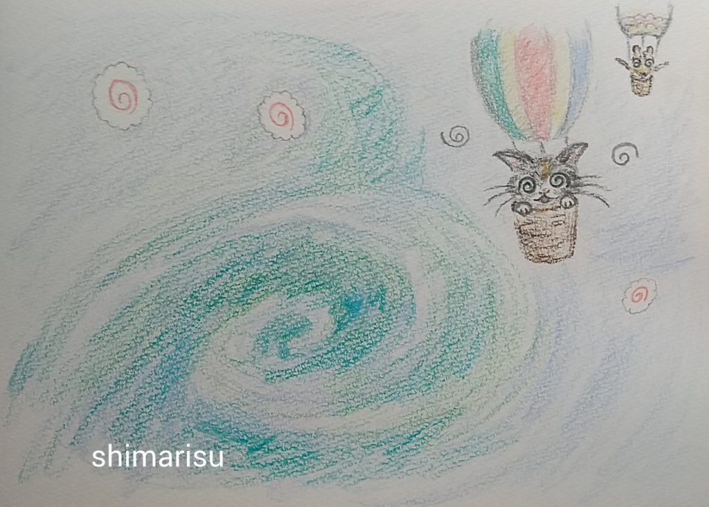 投稿日: 2021年6月6日2021年6月7日ミーコは鳴門の渦潮を見て目がぐるぐる@ω@(色鉛筆画8) ミーコは目がぐるぐる@_@ 「鳴門の渦潮をずっと見ていたら、ミーコは目がぐるぐるにはってしまったよ💦 ここに落ちたら、大変なことになっちゃうな〜! 最大で30m位の渦潮が出来ることもあるんだって。 近くで見たいけど、ちょっと怖かった。観測船を使えば間近で見られるらしいけど、ミーコは、目が回りそうだなぁ。。。@ω@」